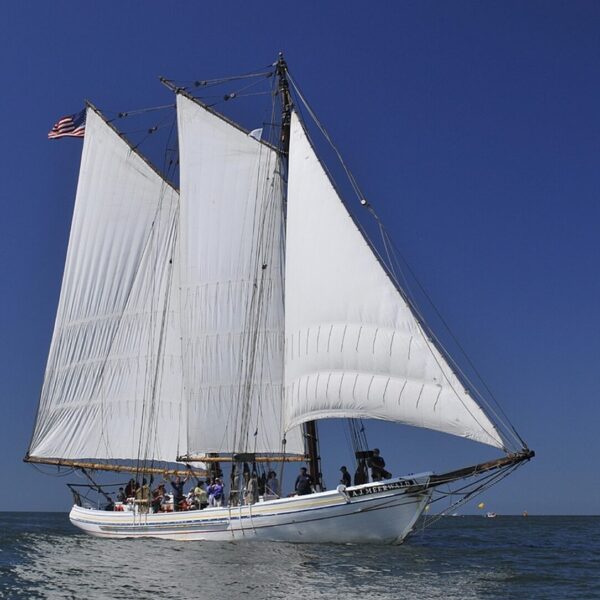 Schooner Woodwind was built to make sailing dreams come true back in 1993 by the Kaye family. For the past 30+ years, guests from all over the world have sailed on her and her sistership, Woodwind II, for public cruises, private events, multi-day cruises and educational cruises. Woodwind II is the “movie star” of the family – she played an important role in the movie Wedding Crashers. But it’s the classic Woodwind that sails every year in the Great Chesapeake Bay Schooner Race – and she’s known to be a fast competitor!